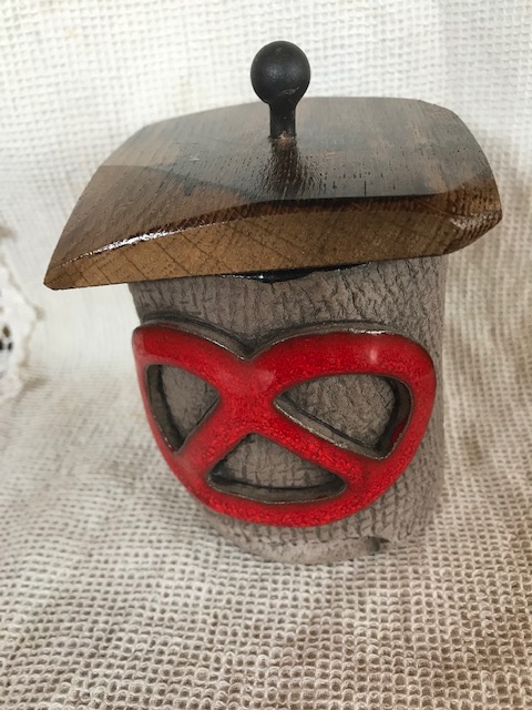 Boite en céramique avec couvercle en bois